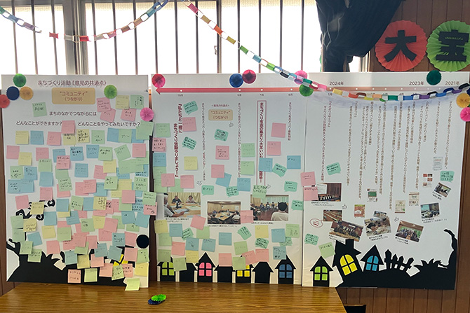 自分たちのまちの魅力や課題について語り合う「みんなの座談會~大寶言いたい放題~」を2023年4月に開催しました。ほとんどの方が、當日「はじめまして」と出會った方々ばかりでしたが、まちに対する想いをしっかり語っていただき、総勢51名の方々から350件もの“想い”を聞くことができました。この意見を取りまとめ、2023年6月に「みんなの意見報告會」を開き、座談會當日に參加できなかった方々へ共有しました。