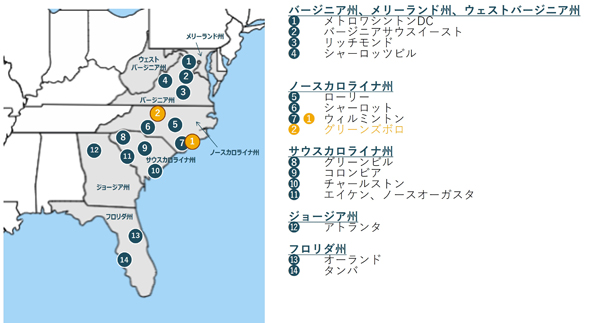 大和ハウスグループでは、地域の気候や文化などに配慮した事業を展開することで、米國での進出地域の拡大を進めています。戸建住宅事業では、現地法人である大和ハウスグループ3社(スタンレー?マーチン社、キャッスルロック社、トゥルーマーク社)が、地域に根差した戸建住宅會社の事業譲受や株式取得などを通じて、地域に密著した営業?施工體制を整えています。 |