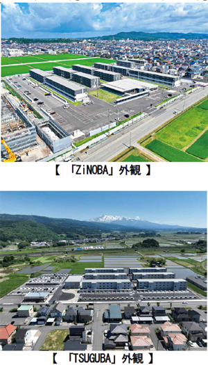 | 「ZiNOBA」(秋田県由利本荘市、2023年4月開業)と「TSUGUBA」(秋田県にかほ市、2024年4月開業)は、住居棟と共用棟で構成される、TDK株式會社の社員寮です。 |