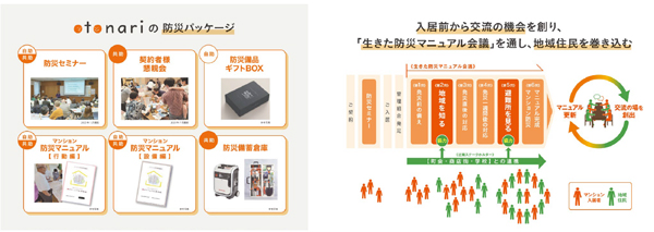| 「otonari」は、マンションデベロッパーとして、入居者同士と地域が自由につながるきっかけを創出する防災支援パッケージです。 |