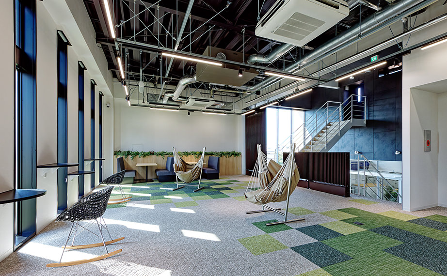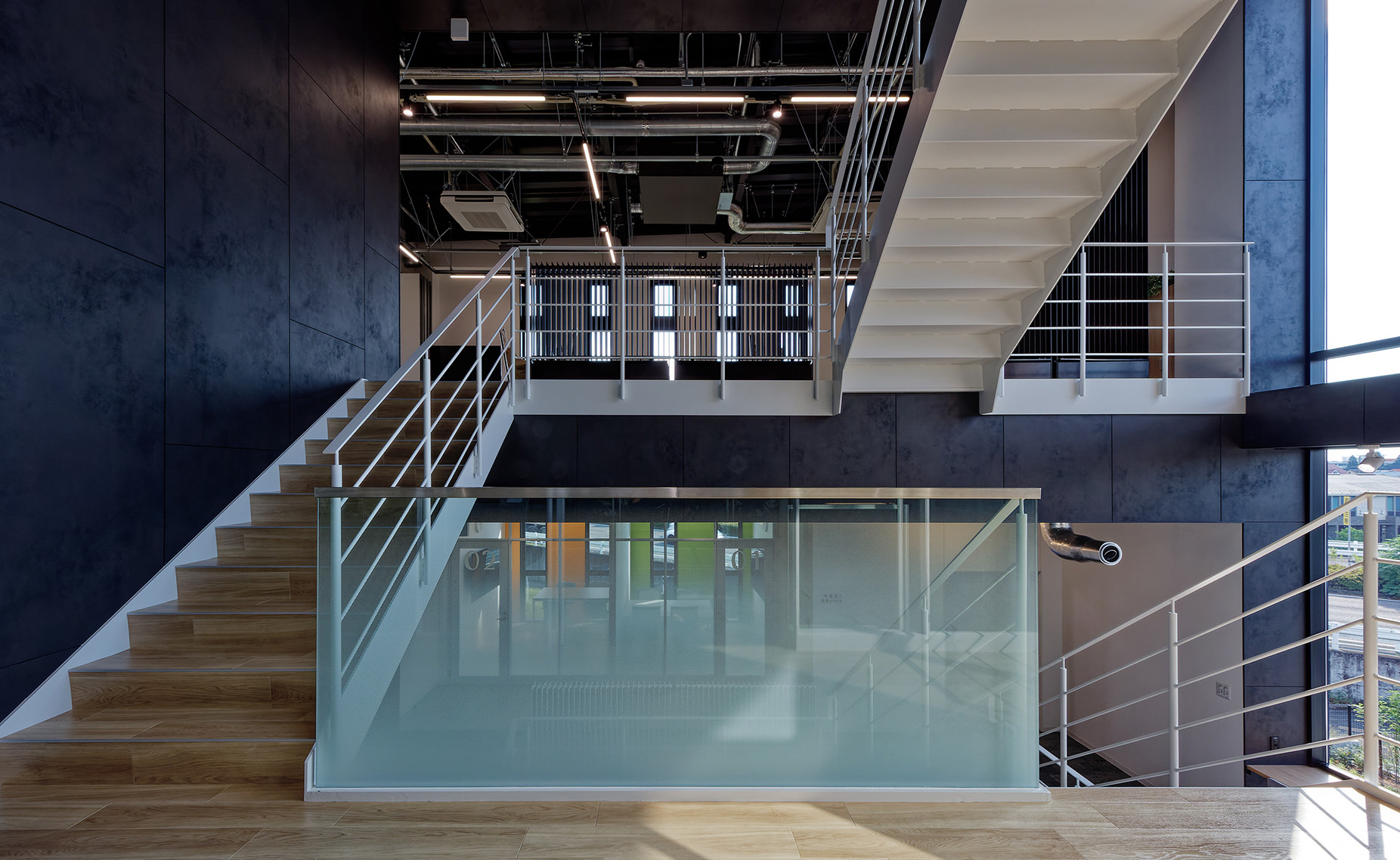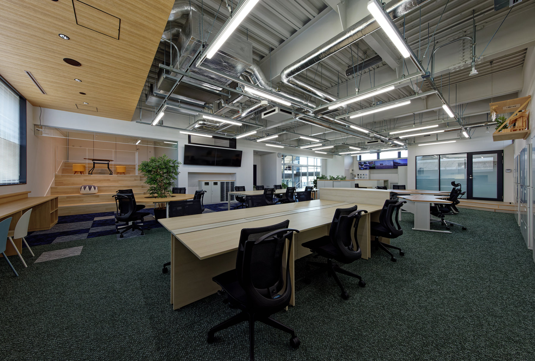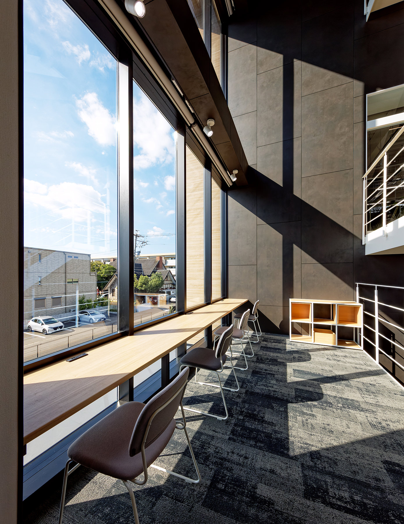 施主は空調?換気等の設計施工を行う會社であり、企業発展の起點になることを目指した建築計畫です。吹抜とスキップフロアを設けることで従業員同士の交流促進や、空気?熱の流れを利用した「ZEB」設計を実現しました。