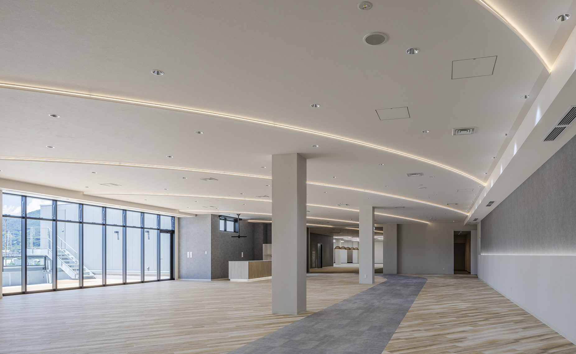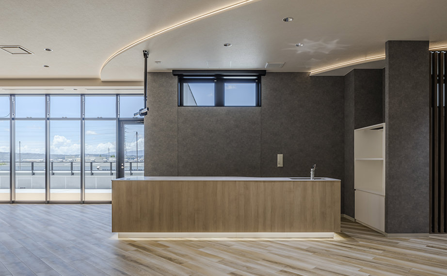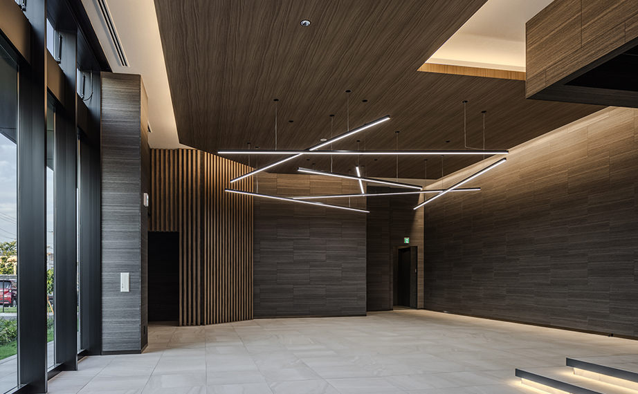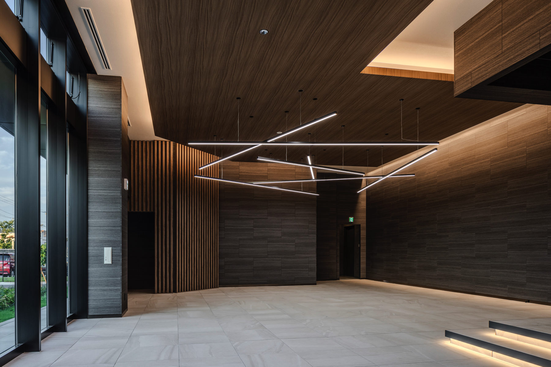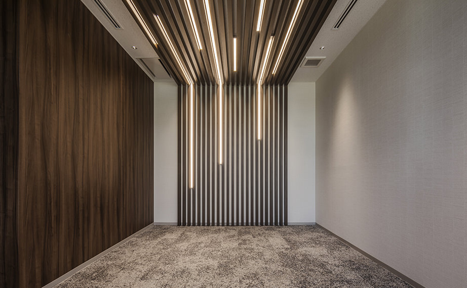 重厚感を表現するゲートをファサードに採用し、その先端には間接照明を仕込み光のゲートを表現。ゲートから建物を貫く光が新たな世界へ導くイメージを計畫に落とし込みました。建物內部へ誘う照明計畫や部屋ごとに異なる手法で演出した照明は、間接照明のショールームのような空間を実現し、施主の商品をアピールする場となりました。