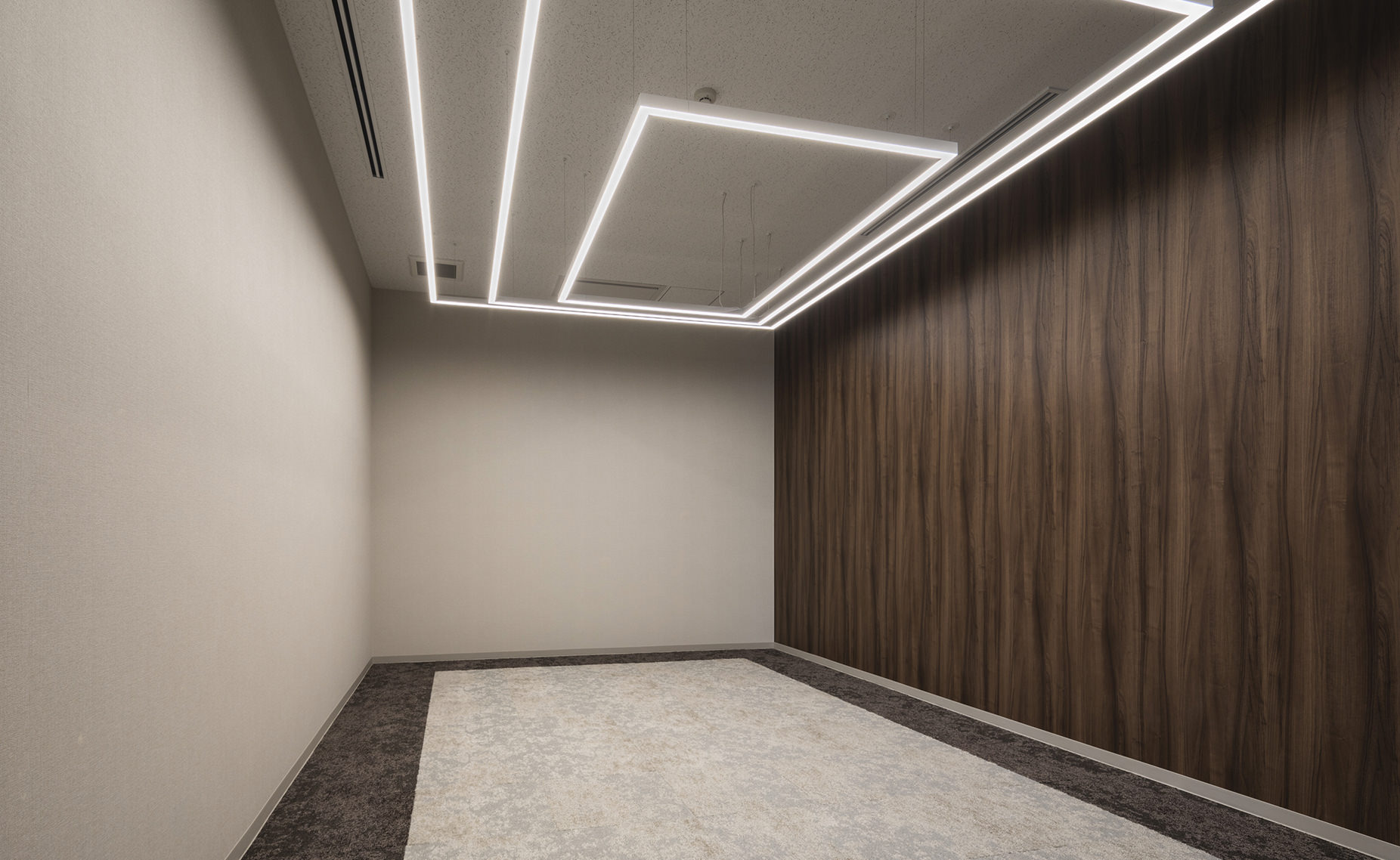 本計畫は照明メーカーの本社移転計畫です。間接照明を主力商品としており、本計畫ではその間接照明を建築の中でいかに表現するかが課題でした。本社という性格上、施主からは「重厚感」という課題も與えられました。