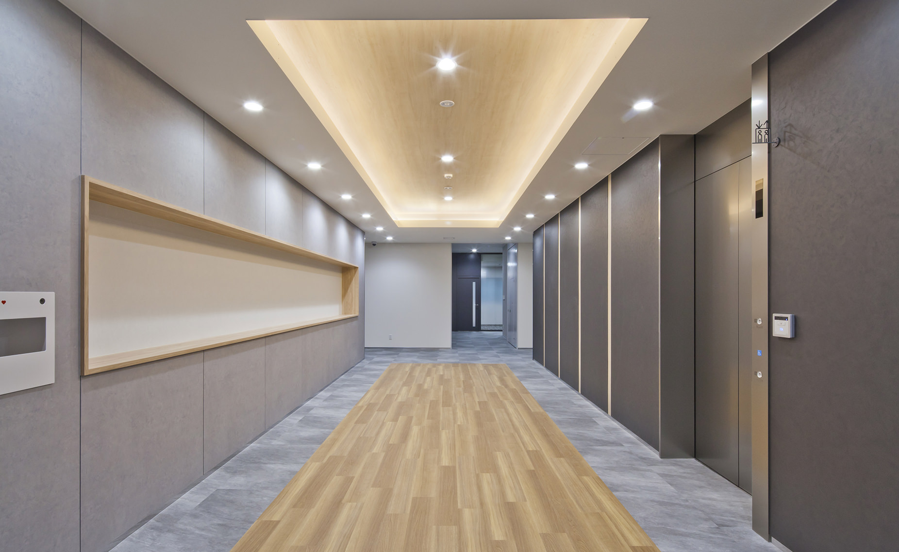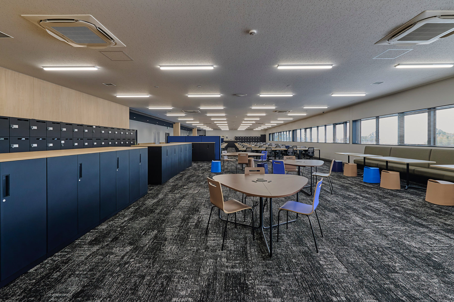 ヒト、モノの動線の効率化を目指した內部空間と、前面建屋を際立たせる外観デザインとしています。