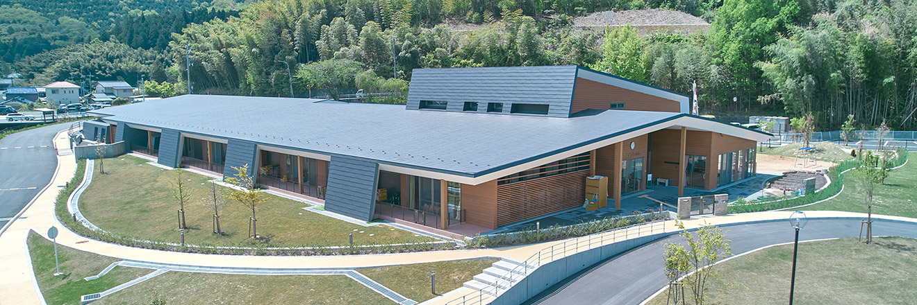 外観はこの地の美しい眺望を守るために、山々の稜線に沿った形狀に。山間への途切れることのないつながりをつくることで、周辺環境との調和を図りました。