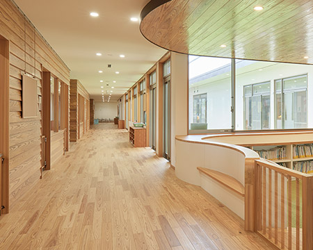 伸びやかな広がりと木の溫もりに包まれ、子どもたちは心地よく過ごすことができます。
