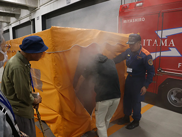 実際の火災を想定した煙の中を歩く煙體験ハウス
