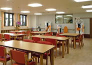 施設(shè)のポイントとしては、自立が可能な一般の利用者と、介護(hù)が必要な認(rèn)知癥の利用者のそれぞれに配慮し、玄関を2カ所設(shè)置している點(diǎn)。これにより、認(rèn)知癥デイサービスを利用される方が、落ち著いた環(huán)境の中での施設(shè)利用を可能にしました。また、2つの玄関のあいだに事務(wù)室をはさむ形で配置することにより、どちらの利用者にも対応しやすくなっています。