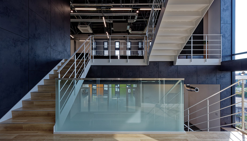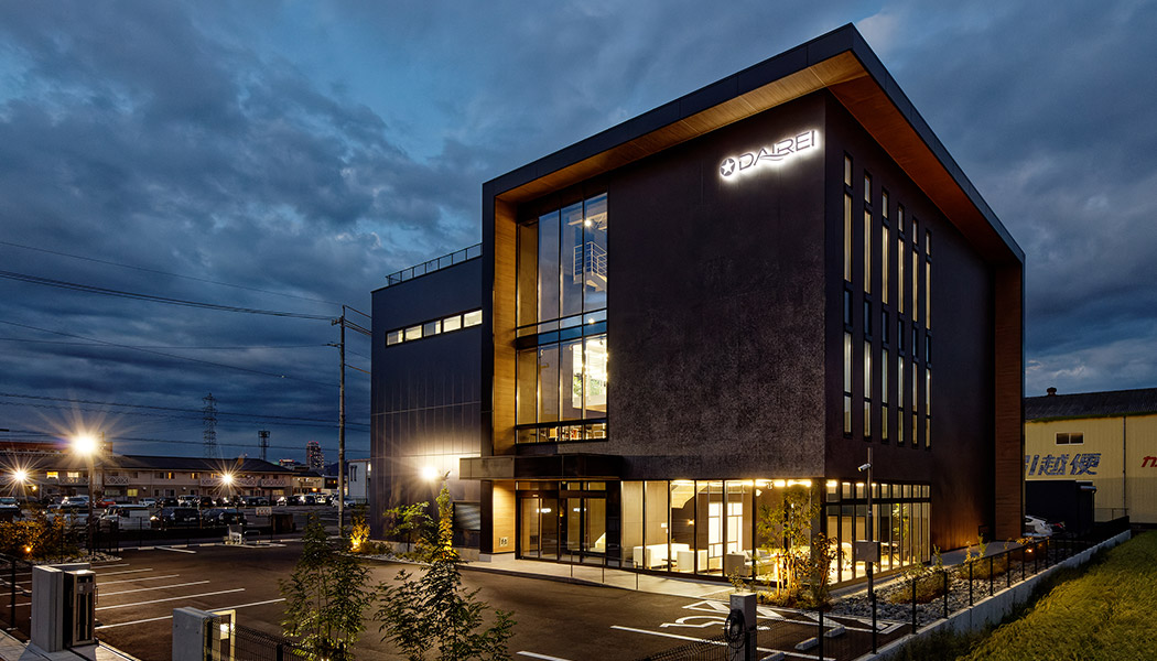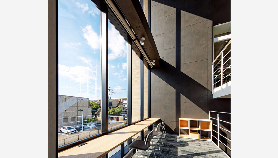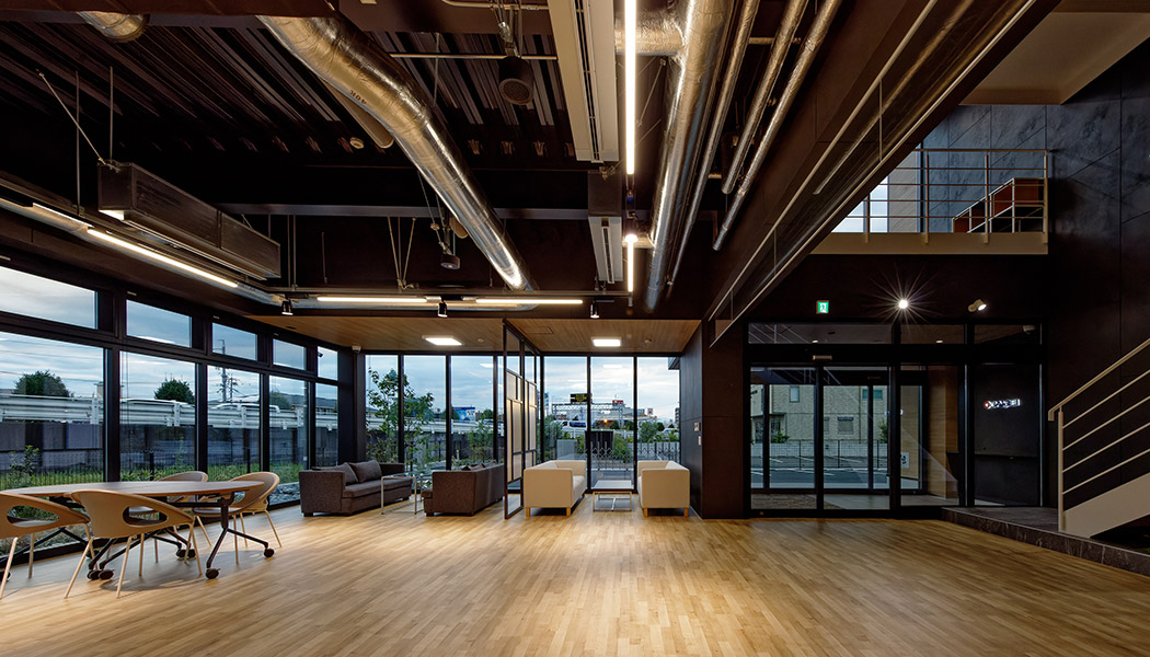 大冷工業株式會社 岐阜支店は、吹き抜けを中心にスキップフロアがつながる明るく開放的な建物です。その吹き抜けに輻射式空調システムを採用し、省エネ性と快適性を向上する空間として利用しています。建物の外皮性能を強化したうえで、水冷式空調システム、デシカント外調機などを採用し使用エネルギーを削減。更に太陽光発電設備(38.5kW)と蓄電池(22.4kWh)、BEMS(※1)によりエネルギーを効率的に利用し、『ZEB』(※2)を実現しました。