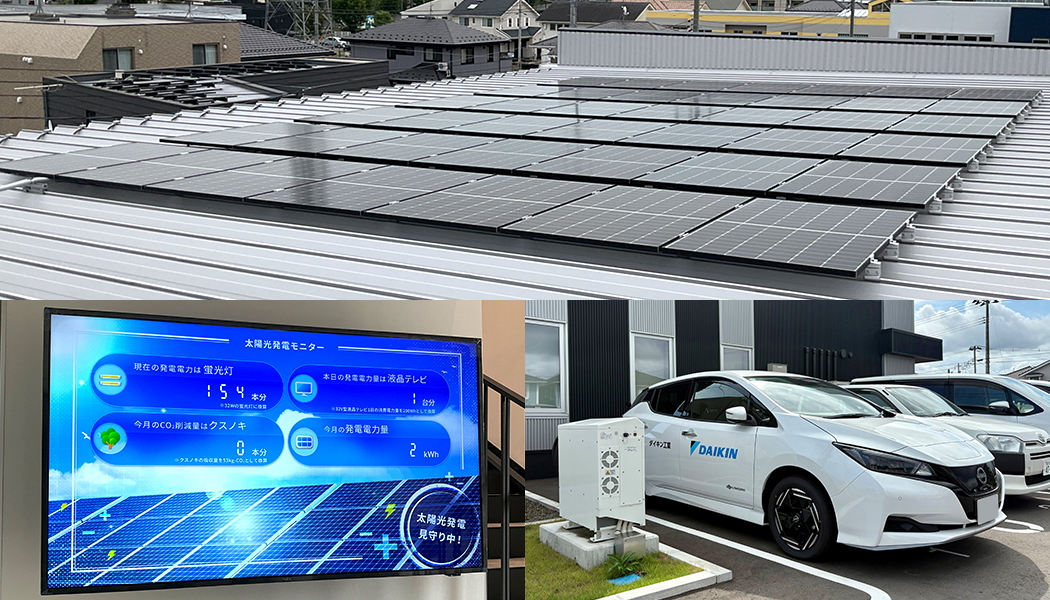 この度、大和ハウス工業様と協力して設計段階から自社製品を含む高効率設備機器の採用、太陽光発電の導入を検討し、さらに社有車のEV化を進めて參りました。ZEB化の普及促進と共に、従業員一人ひとりにとって居心地の良いオフィス環境づくりが実現できたと感じております。