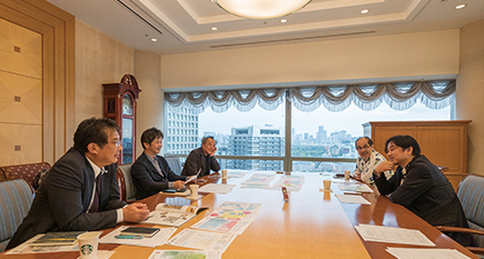 座談風(fēng)景。左から、八田氏、小堀氏、堀部氏、青木氏、平田氏。