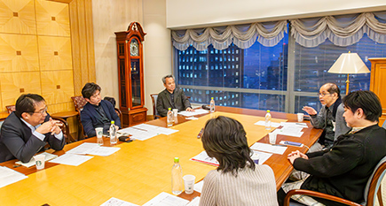 座談風(fēng)景。左から、八田氏、小堀氏、堀部氏、青木氏、平田氏。