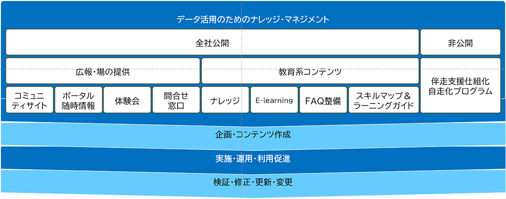 正しいデータを集めるところから、ビジネス成果につながるデータ活用が當たり前になる狀況を生み出すまで、何層もの施策を積み重ねることによって徐々に理想の狀態に近づけていくことができます。