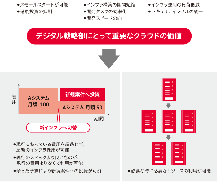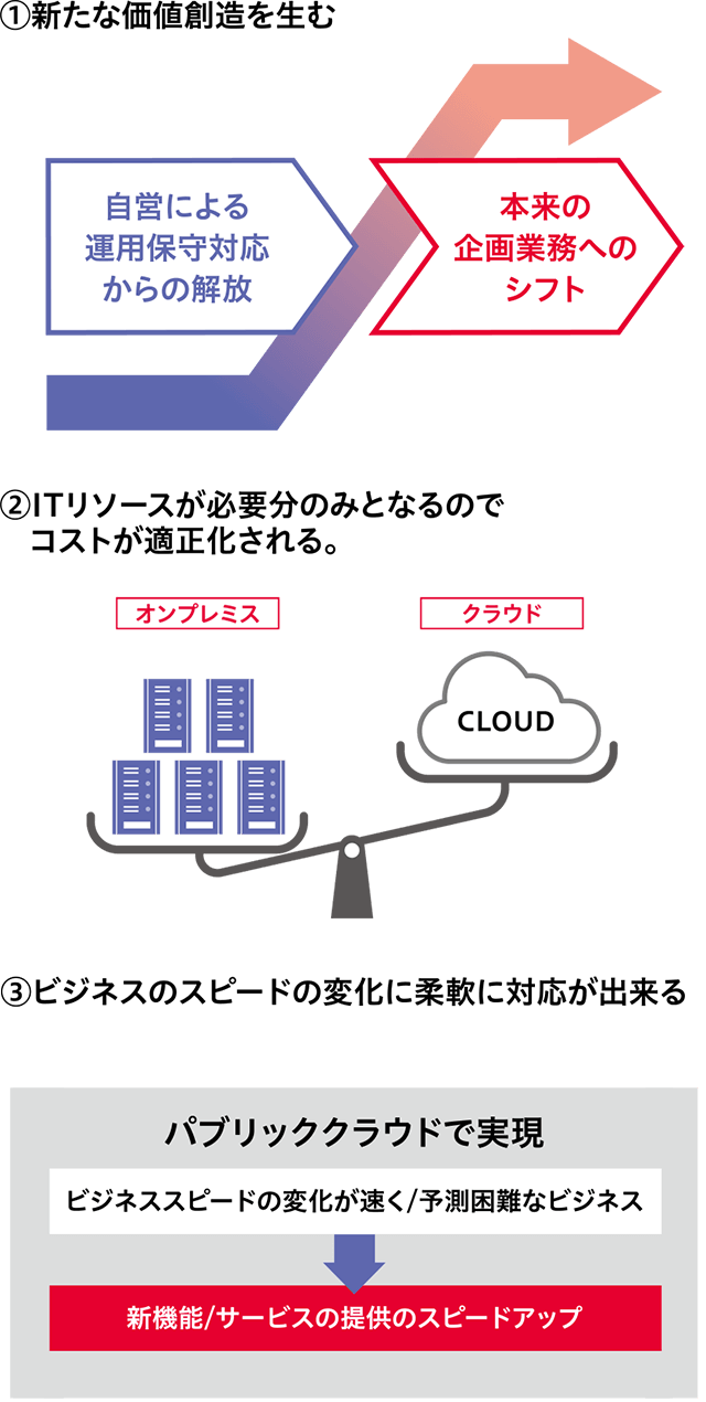 クラウドを活用することにより、下記3つの価値を得ることができます。