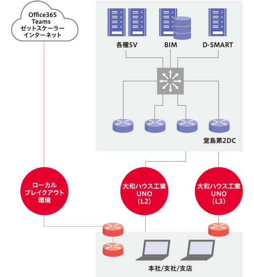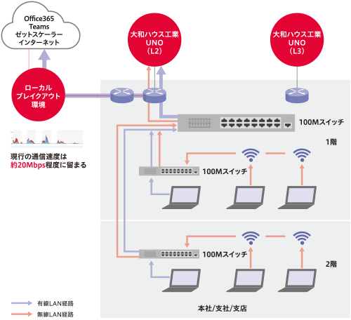 「Zscaler」を利用した、ローカルブレイクアウト環境を導入しましたが、現場からはTeamsの通信が途切れる等、想定していたレスポンスの改善には至りませんでした。