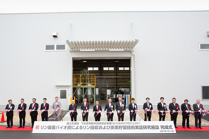 B-DASHプロジェクト実証研究施設が完成(リン吸著バイオ炭によるリン回収および炭素貯留技術実証研究)