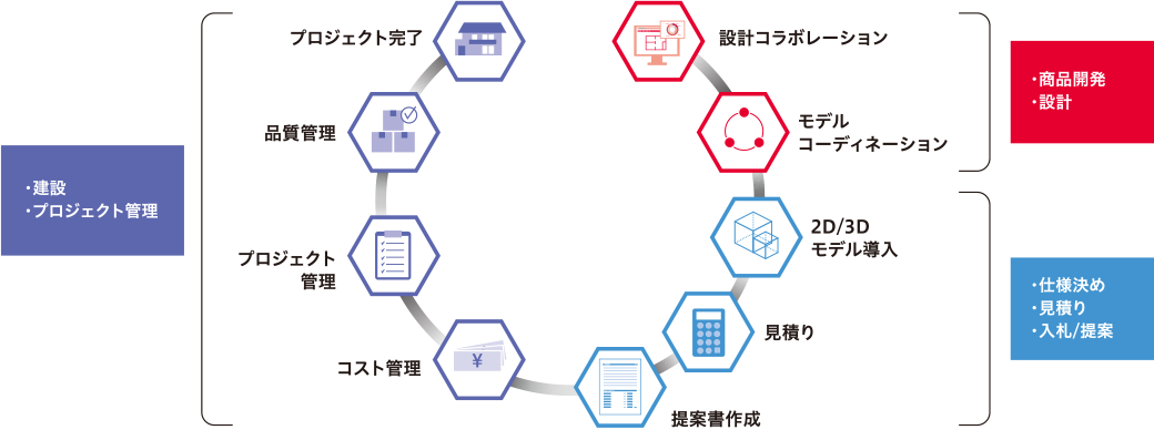 そういった狀況を改善するために、Autodesk Construction Cloudと関連するアプリケーションをその他の既存アプリケーションに導入?統合することにより、標準化システムのアプリケーションとワークフローを提供することにしました。
