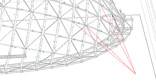 前述の通り本建物は2次元での理解は非常に難解なため、3次元表現を利用し、関係者の理解を深めることに注力しました。BIMの活用によって、構造體同士の干渉、仮設材との干渉不具合が発生しないよう、3Dモデルにて計畫、チェックすることが容易となりました。関係者が同一モデルを共有することにより業務を円滑かつ軽減を可能としました。