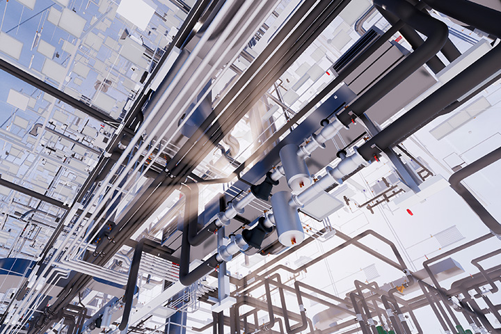 また、技術領域におけるDXは、建設業界の技術者や技能者が、より安全に、快適に、効率的に、創造的に働ける環境をつくりだす「建設現場の働き方改革」でもあり、BIMやタブレットの活用、定點カメラによる遠隔管理、AIによる映像解析など、現場の省人化と安全性向上を実現しています。
