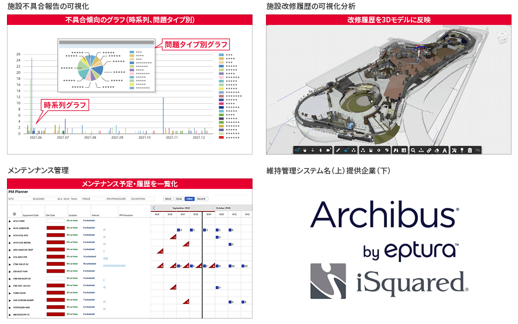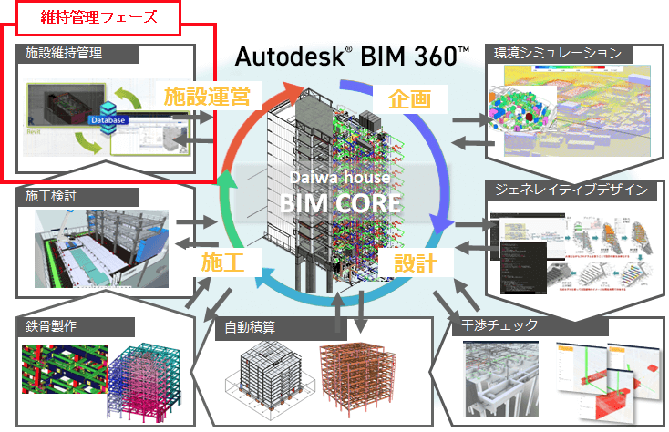 (*1)BIM-FMシステム:建物の設計と施工段階で入力された3次元情報と屬性情報を引き継いで、施設運営に役立てるシステム