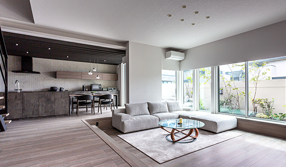 洗練された機能美や重厚感、天井いっぱいの大開口など高いデザイン性を葉えることができるうえ、鉄骨造ならではの快適な暮らしを実現。工場での完全邸別生産の安定した品質により、高性能で安心のある家が完成します。