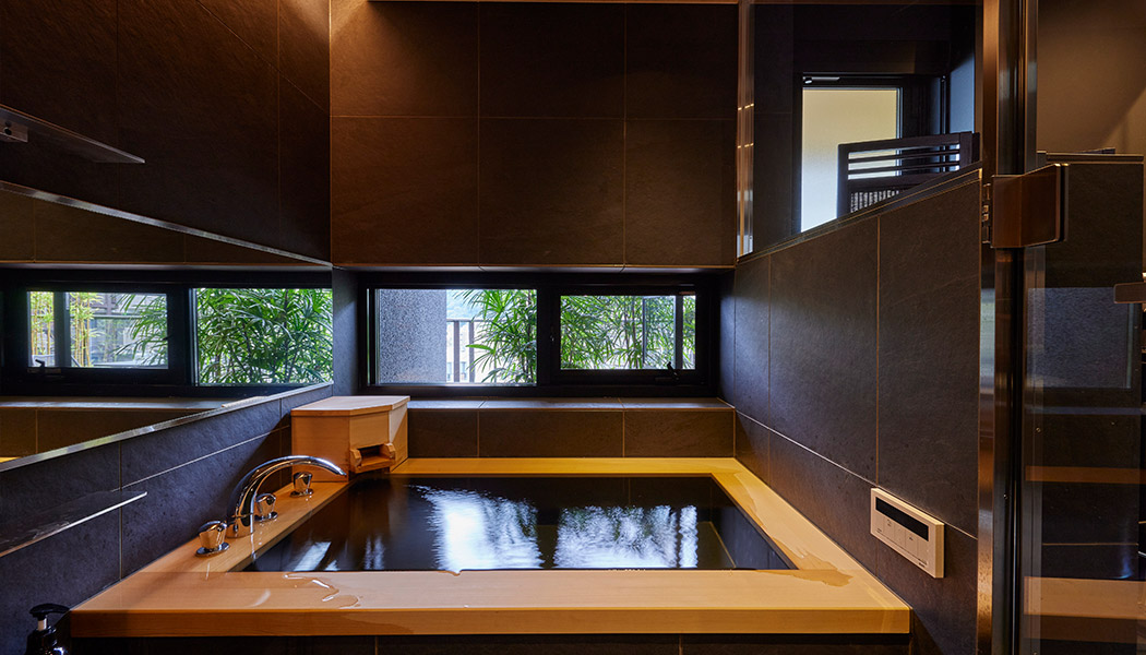 浴室:天然溫泉の檜風呂は、本格的なサウナと水風呂も有している。