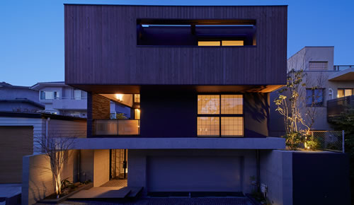 道路と宅盤の高低差最大3m超を生かし地階にガレージ、玄関を配置。地上部にライトコート、アウトヴォイドを配置し通風(fēng)、採光を各居住空間に確保。また、外部からの視線に配慮したプランニングになっている。外裝には天竜杉、內(nèi)裝床には、尾鷲檜などの國産材をふんだんに用いSDGsも意識(shí)している。昨今の経済狀況からもインバウンドも意識(shí)しているのと同時(shí)に、日本人にも五感を刺激する豊かな空間を提供している。