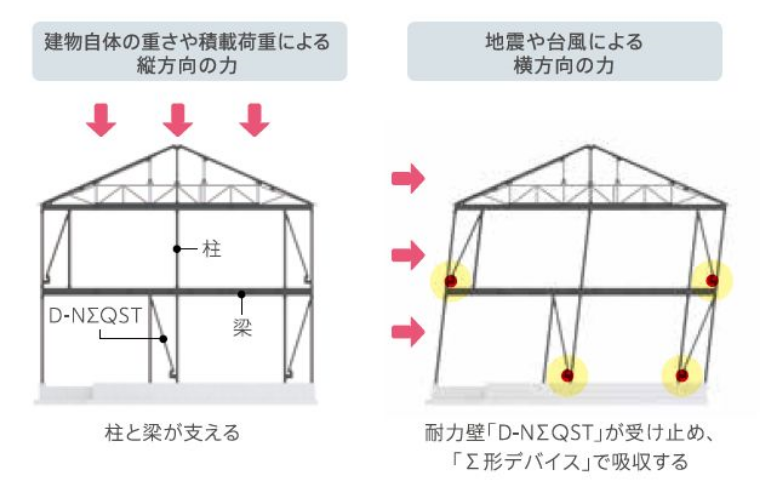 xevoΣの耐力壁には、エネルギー吸収型耐力壁「D-NΣQST(ディーネクスト)」を標準搭載。