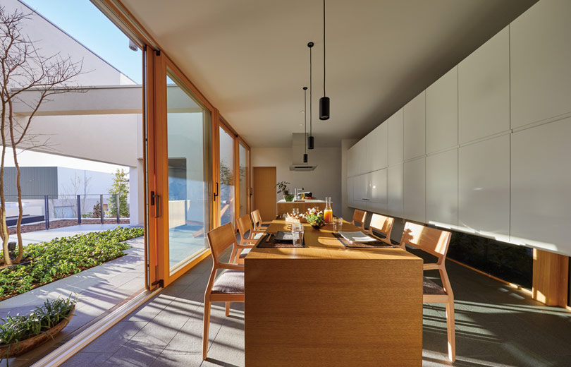 家が紡ぎだすのは365日の物語。窓の向こうにある風景も、季節や時間によって絶えず変化している。窓は外と內をつなぐとともにその借景を空間の一部に取り込むためのもの。窓により住む人の視線をコントロールし、何を見せるか、どのように見せるかを考えることが空間づくりでは重要となる。窓の切り取り方によって、家はさらに魅力的になり、空間はもっと個性豊かに変わっていく。