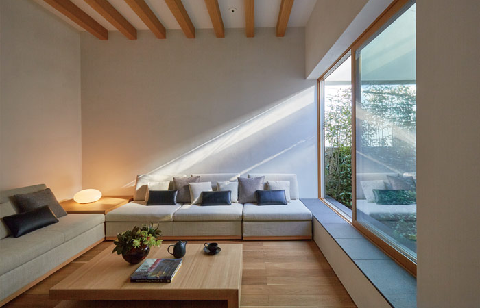 窓の大きさ、形、配置は空間の個性をカタチづくる。奧行きを演出するために坪庭に向けた窓を配したり地窓を設けて視線を下げることで天井の高さを感じさせたり。光と風を導くだけではなく窓を考えることで心を満たす空間は生まれる。