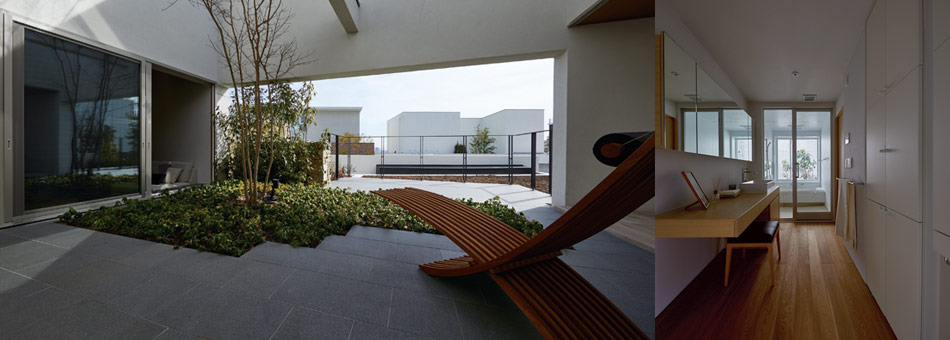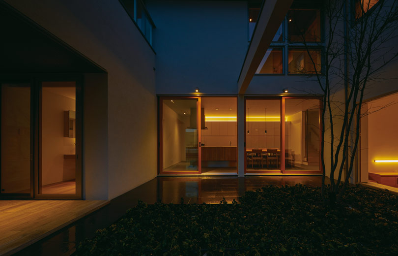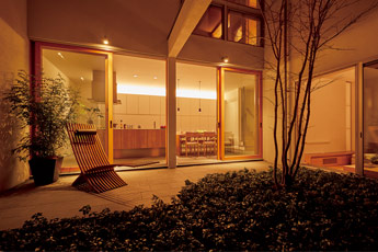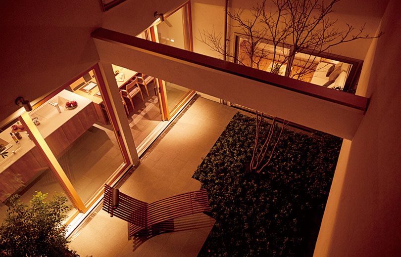 さらに、內と外の連続性にこだわり室內と中庭を一つの光でつないでいる。