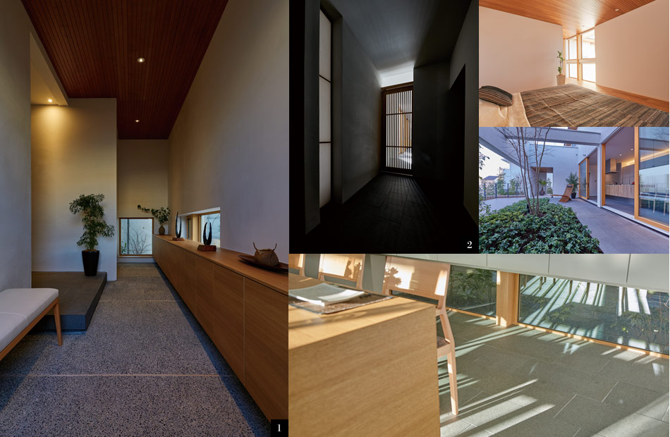 1.地窓を設けて地面とつながり、日常の中で季節を感じる。 2. 影のゲートをつくることで、次の空間への期待感を膨らませる。