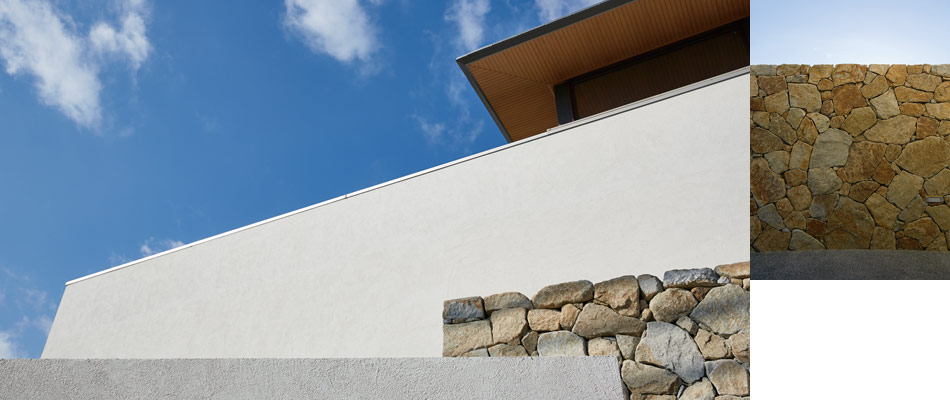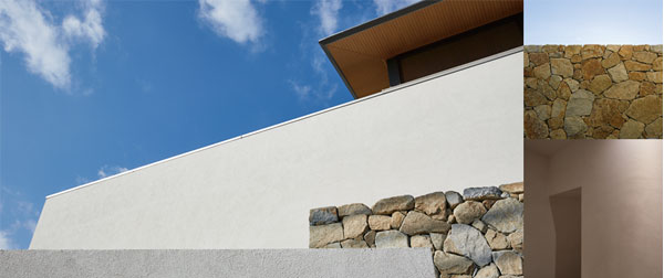 壁は空間の中で、最も大きな演出力を秘めている。壁をスクリーンとして反射によるやわらかな光をつくり出したり、影を映し出して穏やかな空気を醸し出したり、この仕上がりが暮らしを大きく左右する。外に向けては存在感を表現しながら目隠しとしての役割を與えつつ、內に向けては囲い込むことで安心感を演出。壁をより効果的に用いることで、家はより表情豊かに、より心地よいものになる。