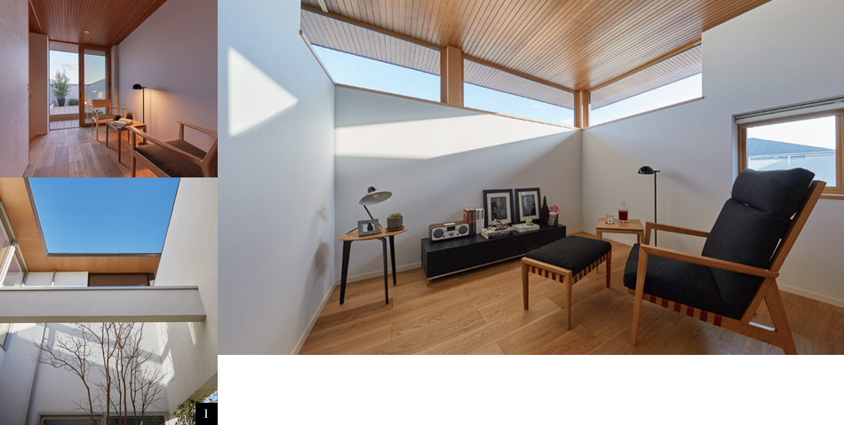 トップライトから導く一筋の自然光、やわらかな光が屆く寢室などこの家の美しい陰影は価値のある財産となる。