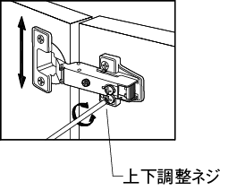 上下調(diào)整ネジをゆるめて丁番本體を上下調(diào)整します。(上下調(diào)整量±2mm)