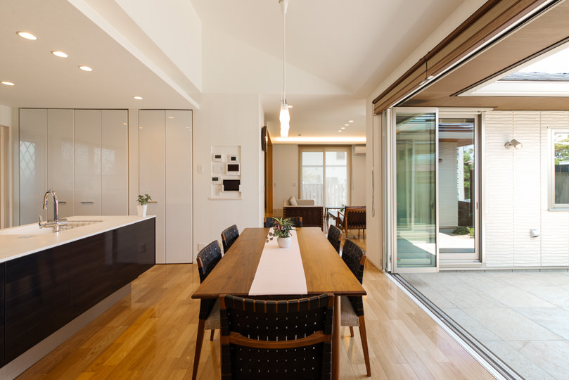 トータルコーディネートされた美しさが際立つNさま邸。テラスを中心にレイアウトしたことで、いつも明るく開放感に満ちた住まいに。「家に長(zhǎng)い時(shí)間過ごす人の意見を重視すると良いですね。我が家は妻の意見を大切にしてつくりました」とNさま