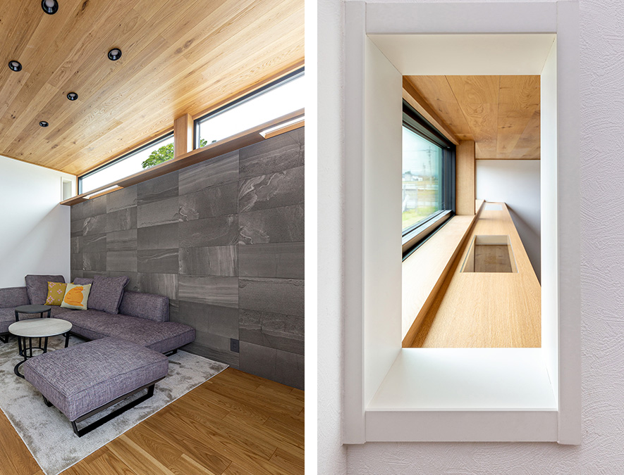 ご実家の敷地內での建築でしたので、ご両親とも密にコミュニケーションを取ってご協力を仰ぎつつ、工事によって生活になるべく支障が出ないように配慮しました。內裝で気を配ったのは美しい納まりです。キッチンのタイル壁やリビングの調濕壁材の割付けで半端が出ないよう、職人さんにも設計者の意図や理由を理解してもらい、ラインをきれいに揃えて施工しました。