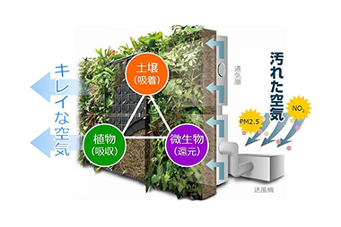大気中に含まれる有害物質(排気ガスやPM2.5など)を分解浄化する壁面緑化技術