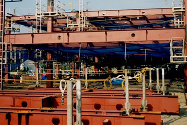 床スラブによる梁の拘束効果によって橫補剛材を省略した、現場施工の省力化技術