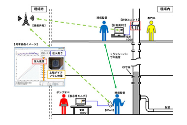 導入コストを抑えることが可能な、CFT造柱のリアルタイム充填管理技術