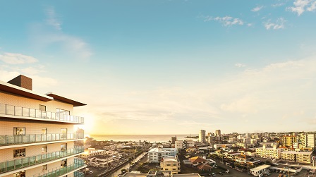 アラハビーチまで徒歩4分、オーシャンビュー広がる12階建てレジデンス。アメリカンビレッジまで車で約6分。