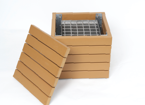 - 災害時に敷地內のマンホールのフタを外して組み立てられる簡易トイレ(洋式便座)。軽量なので移送も容易です。