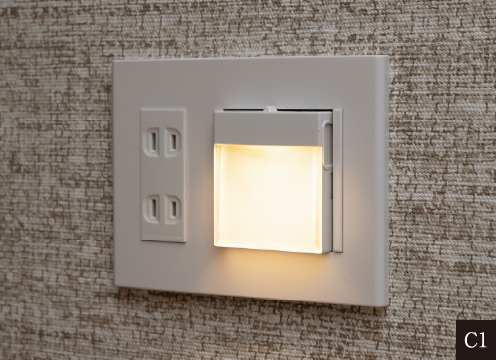 - 停電時には一定時間自動點燈して足元を照らし、取り外すと手元燈として使えるLED保安燈を廊下に設置しました。