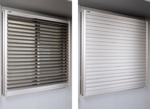 - 住戸外からの視線を遮りながら通風が保たれ、プライバシー性?防犯性に配慮された可動ルーバー面格子を共用廊下側の窓に配しています。※FIX窓を除く。