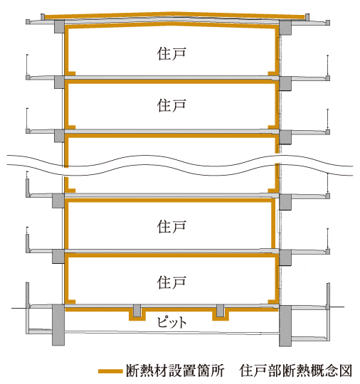- エネルギーの使用量を低減しつつ冷暖房を行うためには、構造軀體の斷熱化など十分な工夫を講じることが必要です。本マンションは斷熱等性能等級5を取得し、エネルギー効率のよい住宅となるような対策を行なっています。