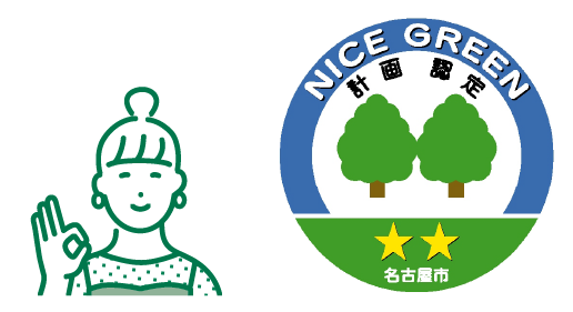 - 名古屋市獨(dú)自の緑化施設(shè)評(píng)価認(rèn)定制度「NICE GREENなごや」。名古屋市內(nèi)の建築物の敷地內(nèi)などで整備される緑化施設(shè)の內(nèi)容を、市が一定の基準(zhǔn)により評(píng)価し、3段階のランクを認(rèn)定する制度です。「プレミスト藤が丘」は、良好な緑化環(huán)境が評(píng)価され★2を取得しています。