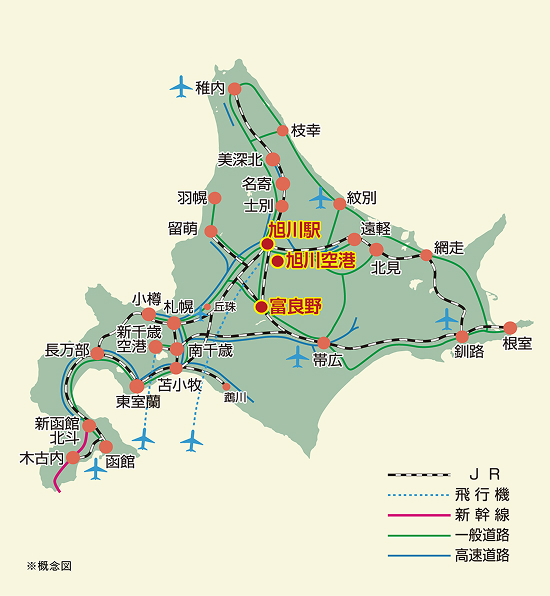 ニセコに一番近い空港は、新千歳空港。移動にはそれなりの時間がかかります。比べて富良野には車で約1時間ほどの距離に旭川空港があり、東京の羽田空港から午前と午後それぞれの便で日帰り移動することができます。また旭川空港は、韓國や臺灣などアジアの都市にある空港と國際便で直接結ばれています。飛行機の遅延や欠航につながりやすい冬の発著率に注目してみると、新千歳空港は70%、旭川空港は99%※。オンタイムで移動ができる飛行機の発著率の安定した高さは、インフラ面を重視する投資家にとっての魅力となっています。