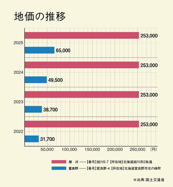 旭川は全國的に見ても地価が安く、都市機能にもまだまだ発展の余地が殘されています。富良野の地価が2年連続で上昇率1位となった事実は、旭川の不動産マーケットへの注目を一層高め、好影響をもたらすことでしょう。充実したアーバンライフを享受できる旭川と、豊かな自然を身近にリゾート気分を味わえる富良野。都市と自然という相対する二つの価値が交わるポジションから、北海道の新時代の暮らしのスタイルが生まれる未來を想像したいですね。旭川都心の可能性は、富良野とのつながりによってさらに拡がり、明るいものとなっていくと考えています。
