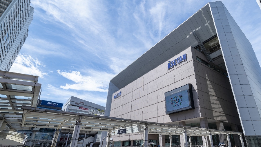 JR「立川」駅北口駅前に位置し、ペデストリアンデッキで結ばれる伊勢丹 立川店。週替りの催事などが行われ、多くの人が訪れます。