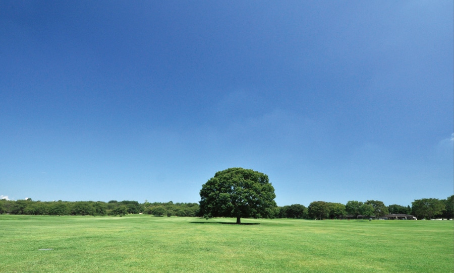 南北約400m、東西約300m、園內の真ん中に広がる「みんなの原っぱ」。中央には高さ20mを超えるシンボルツリーの大ケヤキがあります。また、原っぱには3つの花畑(東花畑、西花畑、南花畑)があり、季節ごとに様々な花が楽しめます。